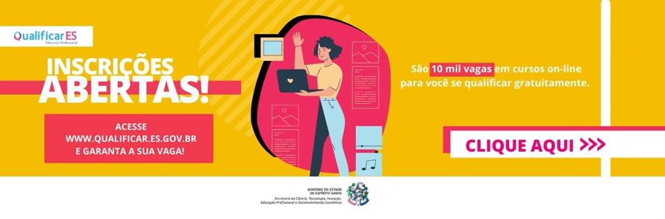Nesta terça-feira (30), têm início as inscrições para 10 mil vagas em cursos on-line do projeto Qualificar ES, do Governo do Espírito Santo, gerenciado pela Secretaria da Ciência, Tecnologia, Inovação, Educação Profissional e Desenvolvimento Econômico (Sectides).