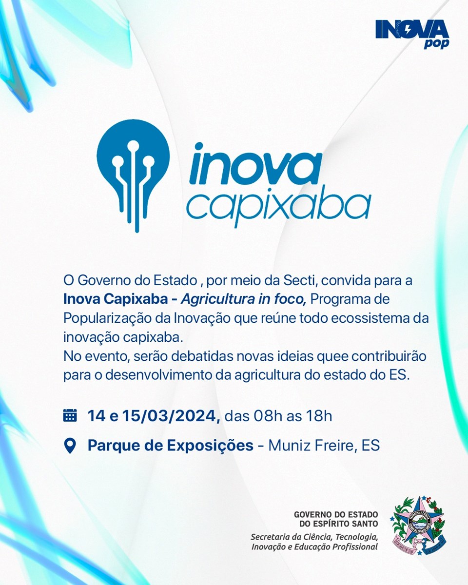 O Programa de Popularização da Inovação, INOVAPOP, visa iniciar e implementar uma política pública de Popularização da Ciência, Tecnologia e Inovação (CTI) no Espírito Santo. Com o objetivo de explorar fundamentos teóricos, propor eventos, estabelecer parcerias e catalisar uma mudança significativa na disseminação da CTI no estado, o programa busca proporcionar acesso à cultura, educação, ciência, tecnologia, pesquisa e inovação. Baseado nas diretrizes da Constituição Federal e Estadual, tem o objetivo de promover o bem-estar da população e impulsionar o desenvolvimento sustentável, social e econômico, enquanto democratiza o acesso à CTI.