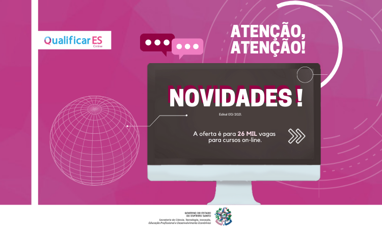 A Secretaria de Inovação e Desenvolvimento (Sectides) publicou, nesta terça-feira (10), uma retificação referente ao Edital Sectides 013/2021, que dispõe sobre a oferta de 26 mil vagas em cursos on-line para o programa Qualificar ES. A partir da retificação, os candidatos poderão optar por até dois cursos oferecidos neste edital. Outra novidade é a prorrogação das inscrições.