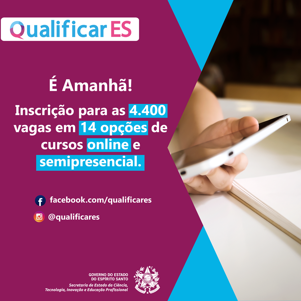 As inscrições começam nessa terça-feira (02) e podem ser realizadas pelo site www.qualificar.es.gov.br
